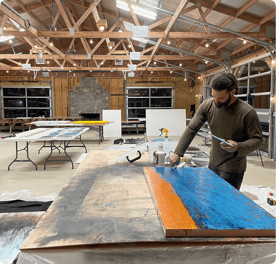 I’m a creative outlier and visual explorer, obsessed with transforming nothing into something. A lifelong entrepreneur, I’ve launched ventures across the arts and other industries—from studios to galleries—but painting has always been my foundation.